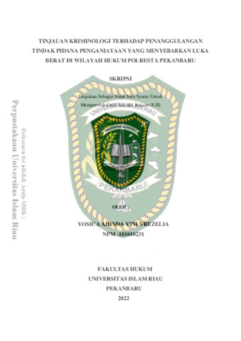 Vrezelia, Yosica Adinda Vini (2022) Tinjauan Kriminologi Terhadap Penanggulangan Tindak Pidana Penganiayaan Yang Menyebabkan Luka Berat Di Wilayah Hukum Polresta Pekanbaru. Other thesis, Universitas Islam Riau.