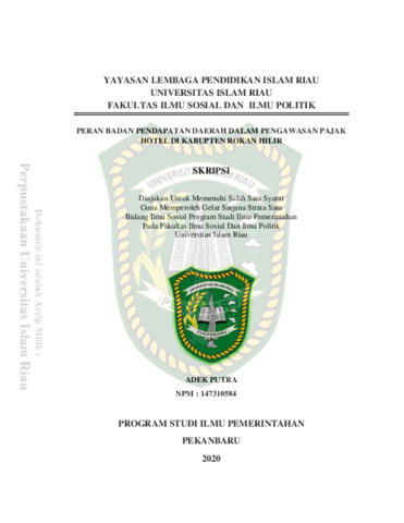 Putra, Adek (2020) Peran Badan Pendapatan Daerah Dalam Pengawasan Pajak Hotel Di Kabupten Rokan Hilir. Other thesis, Universitas Islam Riau.