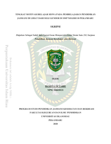 Octarie, Hanisya (2020) Tingkat Motivasi Belajar Siswa Pada Pembelajaran Pendidikan Jasmani Di Lihat Dari Segi Gender Di SMP Negeri 10 Pekanbaru. Other thesis, Universitas Islam Riau.