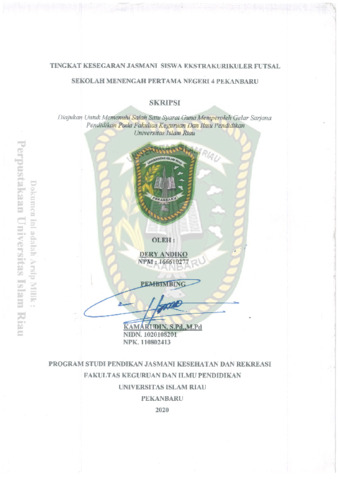 Andiko, Dery (2020) Tingkat Kesegaran Jasmani Siswa Ekstrakurikuler Futsal SMPN 4 Pekanbaru. Other thesis, Universitas Islam Riau.