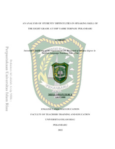 Y, Nidya Dwi Puteri (2022) An Analysis Of Students’ Difficulties In Speaking Skill Of The Eight Grade At SMP Yabri Terpadu Pekanbaru. Other thesis, Universitas Islam Riau.