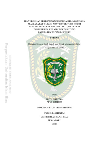 Chintya, Ruth (2020) Penyelesaian Perkawinan Semarga Di Lingkungan Masyarakat Hukum Adat Batak Toba (Studi Pada Masyarakat Adat Batak Di Desa Parbubu Pea Kecamatan Tarutung Kabupaten Tapanuli Utara). Other thesis, Universitas Islam Riau.