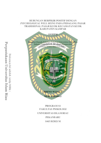 Wijaya, Rhino (2021) Hubungan Berpikir Positif Dengan Psychological Well Being Pada Pedagang Pasar Tradisional Pasar Kuok Kecamatan Kuok Kabupaten Kampar. Other thesis, Universitas Islam Riau.