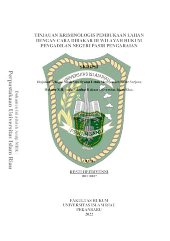 Hefriyenni, Resti (2022) Tinjauan Kriminologis Pembukaan Lahan Dengan Cara Dibakar Di Wilayah Hukum Pengadilan Negeri Pasir Pengaraian. Other thesis, Universitas Islam Riau.