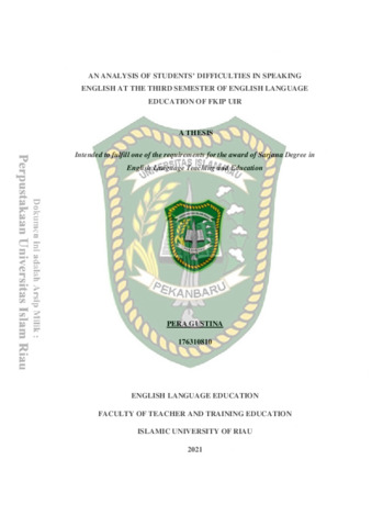 An Analysis Of Students’ Difficulties In Speaking English At The Third Semester Of English Language Education Of FKIP UIR