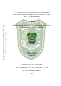 Gustina, Pera (2022) An Analysis Of Students’ Difficulties In Speaking English At The Third Semester Of English Language Education Of FKIP UIR. Other thesis, Universitas Islam Riau.