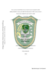 Pronica, Deby (2022) Tugas Dan Kewenangan Bawaslu Kabupaten Rokan Hulu Dalam Menyelesaikan Pelanggaran Pilkada Serentak Tahun 2020. Other thesis, Universitas Islam Riau.