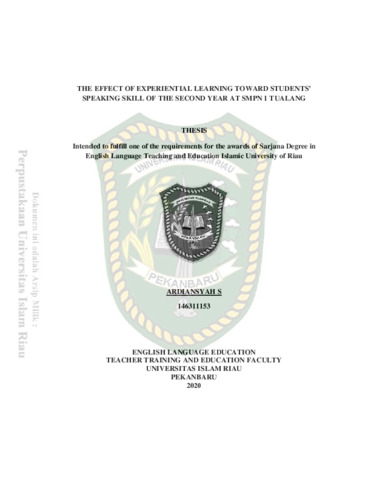 S, Ardiansyah (2020) The Effect Of Experiential Learning Toward Students’ Speaking Skill Of The Second Year At SMPN 1 Tualang. Other thesis, Universitas Islam Riau.