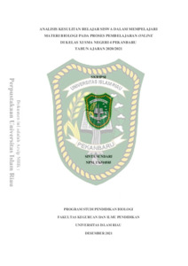 Sundari, Sinta (2022) Analisis Kesulitan Belajar Siswa Dalam Mempelajari Materi Biologi Pada Proses Pembelajaran Online Di Kelas XI SMA Negeri 4 Pekanbaru Tahun Ajaran 2020/2021. Other thesis, Universitas Islam Riau.