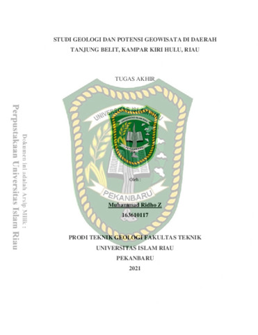 Z, Muhammad Ridho (2022) Studi Geologi Dan Potensi Geowisata Di Daerah Tanjung Belit, Kampar Kiri Hulu, Riau. Other thesis, Universitas Islam Riau.