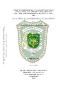 Suwandi, Aidil (2021) Studi Kondisi Permukaan Jalan Menggunakan Analisa Penilaian Metode Surface Distress Index (SDI) Dan International Roughness Index (IRI) (Studi Kasus : Jalan Lintas Sungai Pakning Dumai). Other thesis, Universitas Islam Riau.