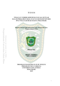 Nofriza, Bonny (2020) Tinjauan Yuridis Kedudukan Kuasa Mutlak Dalam Peralihan Hak Atas Tanah Oleh Notaris PPAT Wilayah Hukum Kota Pekanbaru. Other thesis, Universitas Islam Riau.