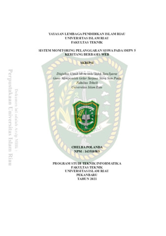 Polanda, Chelba (2022) Sistem Monitoring Pelanggaran Siswa Pada SMPN 5 Keritang Berbasis Web. Other thesis, Universitas Islam Riau.