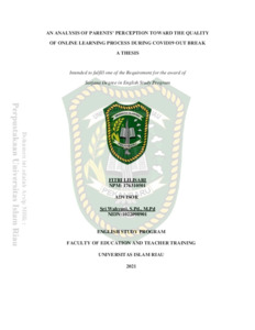 Lilisari, Fitri (2021) An Analysis Of Parents’ Perceptions Toward The Quality Of Online Learning Process During Covid-19 Outbreak. Other thesis, Universitas Islam Riau.