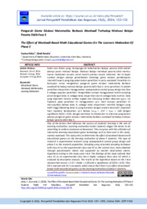 Atika, Yunisa and Amelia, Sindi (2024) The Effect of Wordwall-Based Math Educational Games on The Learning Motivation of Phase E Students SMAS YLPI Pekanbaru. Perspektif Pendidikan dan Keguruan, 15 (2). pp. 123-132. ISSN 1411-3570