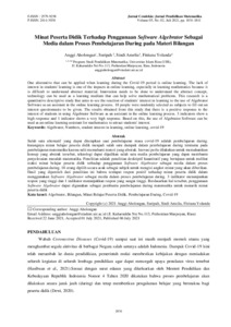 13. Minat Peserta Didik Terhadap Penggunaan Software Algebrator Sebagai Media dalam Proses.pdf - Published Version Download (308kB) | Preview |