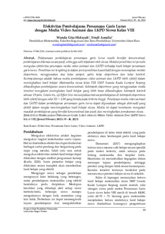 16. Efektivitas Pembelajaran Persamaan Garis Lurus dengan Media Video Animasi.pdf - Published Version Download (531kB) | Preview |
