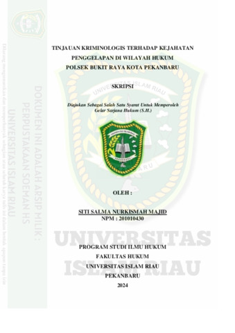 Salma Nurkismah Majid, Siti (2024) Tinjauan Kriminologis Terhadap Kejahatan Penggelapan Di Wilayah Hukum Polsek Bukit Raya Kota Pekanbaru. Other thesis, Universitas Islam Riau.