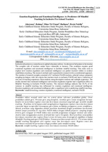 Inclusive education is a central issue in global education reform. An element of education is the teacher.The complex role of teachers makes them vulnerable to burnout. This condition requires good emotional regulation and emotional intelligence to facilitate mindful teaching. This study aims to explore how emotion regulation and emotional intelligence can predict teachers' ability to conduct mindfulness teaching. The research method used is quantitative research with a correlational approach. The number of research samples consisted of 67 inclusive PAUD teachers, selected using a purposive sampling technique, with the criteria that teachers teach in inclusive PAUD and have a minimum of one year of teaching experience. Data analysis using descriptive analysis and multiple regression. The results showed that emotional intelligence and emotion regulation together had a significant effect on Mindful Teaching in Inclusive PAUD teachers. The research findings indicate that 58.3% of the variance in mindful teaching was influenced by emotion regulation and emotional intelligence. Emotion regulation and emotional intelligence play a significant role in predicting mindful teaching.