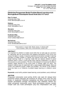 Utami, Dian Tri and Raihana, Raihana and Alucyana, Alucyana and Nisa, Kudwatun and Rofi’atin, Siti (2024) Efektivitas Penggunaan Model Problem Based Learning untuk Meningkatkan Keterampilan Sosial Anak Usia 5-6 Tahun. Awlady : Jurnal Pendidikan Anak, 10 (1). pp. 75-83. ISSN 2528-7427
