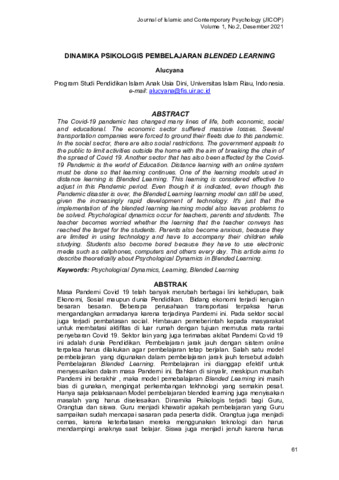 Alucyana, Alucyana (2022) Dinamika Psikologis Pembelajaran Blended Learning. Journal of Islamic and Contemporary Psychology (JICOP), 1 (2). pp. 61-66. ISSN 2808-9952