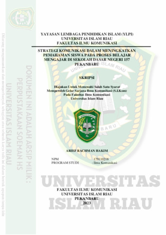 Hakim, Arief Rachman (2023) Strategi Komunikasi Dalam Meningkatkan Pemahaman Siswa Pada Proses Belajar Mengajar Di Sekolah Dasar Negeri 157 Pekanbaru. Other thesis, Universitas Islam Riau.