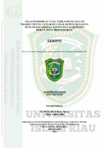Sakdhiah, Salim (2022) Nilai Pendidikan Yang Terkandung Dalam Tradisi Tepung Tawar Di Luhak Kepenuhan Kota Tengah Kecamatan Kepenuhan Kabupaten Rokan Hulu Provinsi Riau. Other thesis, Universitas Islam Riau.