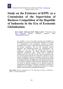 Apriani, Desi and Idris, Zulherman and Lestari, Meilan (2019) Study on the Existence of KPPU as a Commission of the Supervision of Business in the Era of Economic Globalization. Jurnal Scopus, 10. ISSN 2201-1323