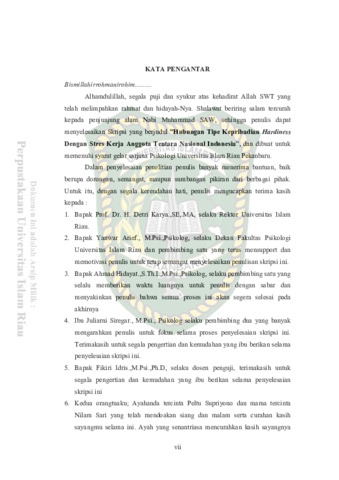 Putri, Dwi Utami Mandala (2017) Hubungan Tipe Kepribadian Hardiness Dengan Stres Kerja Anggota Tentara Nasional Indonesia. Other thesis, Universitas Islam Riau.