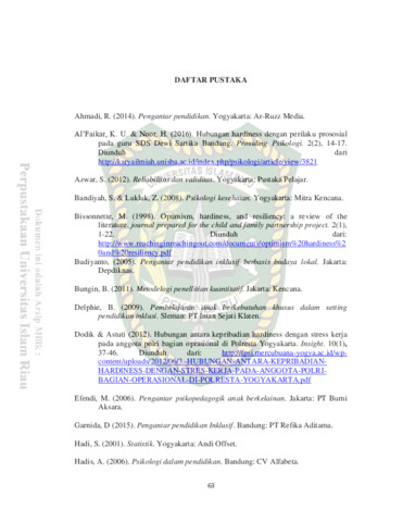 Nasution, Anggun Novmita Muliani (2017) Perbedaan Kepribadian Tangguh (Hardiness) Tenaga Pendidik Sekolah Inklusi dan Sekolah Reguler. Other thesis, Universitas Islam Riau.