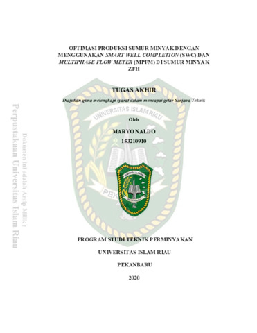 Naldo, Maryo (2020) Optimasi Produksi Sumur Minyak Dengan Menggunakan Smart Well Completion (SWC) dan Multiphase Flow Meter (MPFM) di Sumur Minyak Zfh. Other thesis, Universitas Islam Riau.