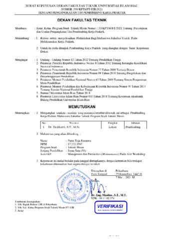 Panuh, Dedikarni Bukti Kerja Praktek Teja. UIR.