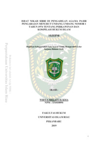 Sukma, Widya Melati (2019) Isbat Nikah Sirri di Pengadilan Agama Pasir Pengaraian Menurut Undang-undang Nomor 1 Tahun 1974 Tentang Perkawinan dan Kompilasi Hukum Islam. Other thesis, Universitas Islam Riau.