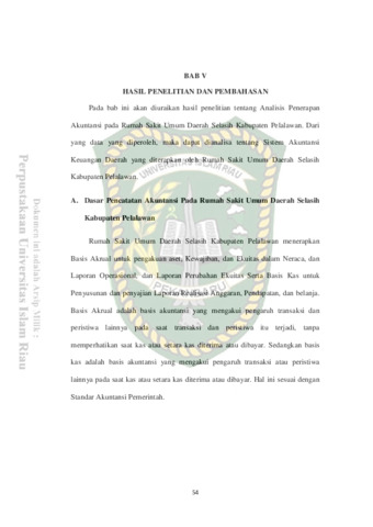 Penelitian ini bertujuan untuk mengetahui kesesuian penerapan Akuntansi Pada Rumah Sakit Umum Daerah Selasih Kabupaten Pelalawan, dengan peraturan pemerintah Nomor 71 Tahun 2010 tentang standar akuntansi pemerintah. Penelitian ini dilakukan pada bagian keungan Rumah Sakit Umum Daerah Selasih Kabupaten Pelalawan. Teknik pengumpilan data yaitu dengan wawancara langsung dan dokumentasi atau memfotocopy data keuangan daerah pada Rumah Sakit Umum Daerah Selasih Kabupaten Pelalawan. Dalam penyusunan penelitian ini, penulis menggunakan metode deskriptif yaitu dengan membandingkan antara praktek dengan teori yang ada, kemudian ditarik suatu kesimpulan yang untuk disajikan dalam skripsi. Dari hasil penelitian ini disimpulkan bahwa penerapan akuntansi pada Rumah Sakit Umum Daerah Selasih Kabupaten Pelalawan belum sepenuhnya mengacu pada peraturan pemerintah Nomor 71 tahun 2010. Sebaiknya melakukan penyusutan terhadap aset tetap yang dimilikinya dan juga di dalam laporan keuangan tidak membuat laporan perubahan saldo anggaran lebih dan laporan arus kas sesuai dengan peraturan pemerintah Nomor 71 Tahun 2010.sehingga perlu disempurnakan agar penerapan akuntansi pada Rumah Sakit Umum Daerah Selasih Kabupaten Pelalawan berpedoman pada peraturan pemerintah Nomor 71 Tahun 2010 tentang Standar Akuntansi Pemerintah.