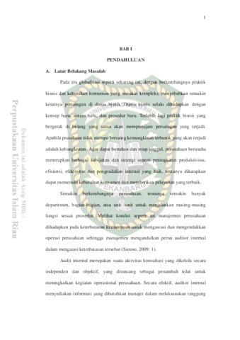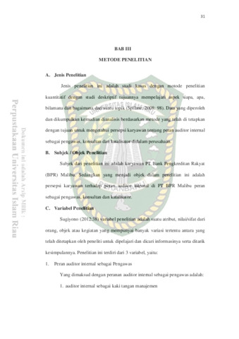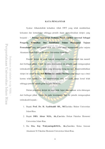Persepsi Karyawan Tentangperan Auditor Internal Sebagai Pengawas, Konsultandan Katalisator Dalampencapaian Tujuanperusahaan (Studi Kasus Dipt Bpr Malibu)