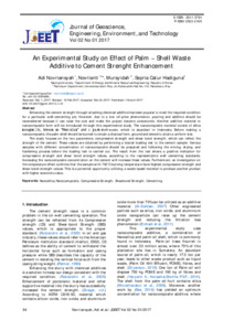 Novriansyah, Adi and Novrianti, Novrianti and Umar, Mursyidah and Catur Hadiguna, Sepria (2017) An Experimental Study on Effect of Palm Shell Waste Additive to Cement Strenght Enhancement. Journal of Geoscience, Engineering, Environment, and Technology, 2 (1). pp. 64-68. ISSN E-ISSN : 2541-5794 , P-ISSN : 2503-216X