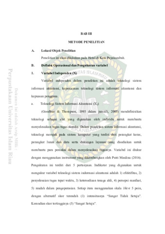 Pengaruh Teknologi Sistem Informasi Akuntansi Kepercayaan Teknologi Sistem Informasi Akuntansi Dan Kepuasan Pengguna Terhadap Kinerja Individual Pada Hotel Di Kota Payakumbuh