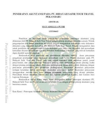 Putri, Suci Adellia (2018) Penerapan Akuntansi Pada Pt. Hidayahsafir Tour Travel Pekanbaru. Other thesis, Universitas Islam Riau.