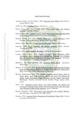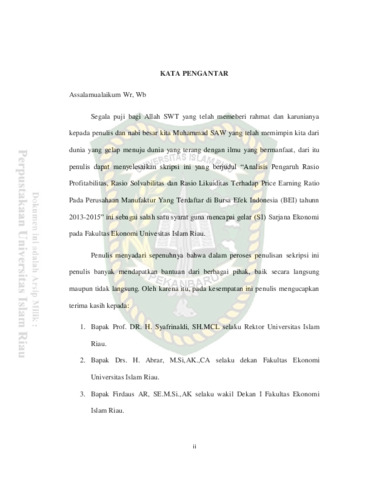 Fanurizal, Dedi (2018) Analisis Pengaruh Rasio Profitabilitas, Rasio Solvabilitas Dan Rasio Likuiditas Terhadap Price Earning Ratio Pada Perusahaan Manufaktur Yang Terdaftar Di Bursa Efek Indonesia (Bei) Tahun 2013-2015. Other thesis, Universitas Islam Riau.