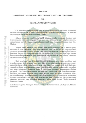 Lupitasari, Syafira Wanda (2018) Analisis Akuntansi Aset Tetap Pada Cv. Mutiara Pekanbaru. Other thesis, Universitas Islam Riau.