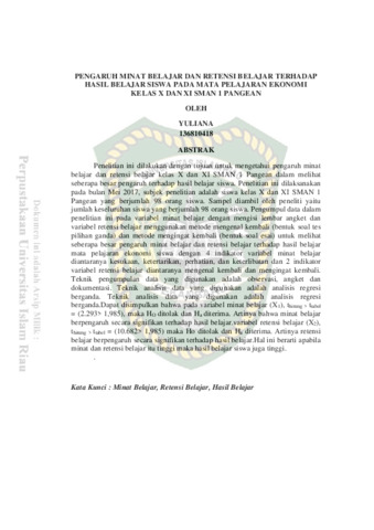 Pengaruh Minat Belajar dan Retensi Belajar Terhadap Hasil Belajar Siswa Pada Mata Pelajaran Ekonomi Kelas X dan XI SMAN 1 Pangean