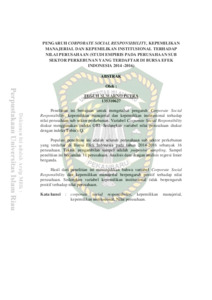 | Uncontrolled Keywords: | corporate social responsibility, kepemilikan manajerial, kepemilikan institusional, Nilai perusahaan. |