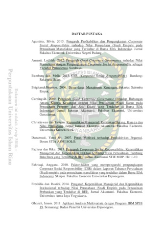 Putra, Teguh Suwarno (2018) Pengaruh Corporate Social Responsibility, Kepemilikan Manajerial Dan Kepemilikan Institusional Terhadap Nilai Perusahaan (Studi Empiris Pada Perusahaan Sub Sektor Perkebunan Yang Terdaftar Di Bursa Efek Indonesia 2014 -2016). Other thesis, Universitas Islam Riau.