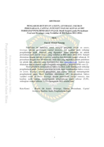 This study aims to examine the effect of return on assets, leverage, size, capital intensity and audit quality on tax avoidance. The population of this study was food and beverages companies listed on IDX in 2012 until 2016. The sample was chosen by purposive sampling method an obtained 10 companies with 50 observations. The data used was secondary data obtained from www.idx.co.id. Data was analyzed by multiple linier regression analysis with SPSS program 22 version. The results showed that audit quality has effect on tax avoidance. Unfortunately, this study failed to prove that the return on assets, leverage, size, and capital intensity affects tax avoidance. The results of determination (R) showed that variables of return on assets, leverage, size, capital intensity and audit quality on tax avoidance amounted to 25,9% while the remaining 74,1% was affected by other variables.