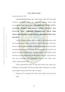 Tawang, Fauzia Ahmad (2018) Pengaruh Return On Assets, Leverage, Ukuran Perusahaan, Capital Intensity Dan Kualitas Audit Terhadap Penghindaran Pajak (Studi Empiris Pada Perusahaan Food And Beverages Yang Terdaftar Di Bei Tahun 2012-2016). Other thesis, Universitas Islam Riau.