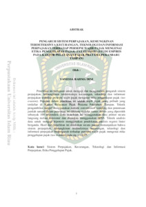 This study research to examine and analyze the influence of the tax system, the possibility of detection of fraud, technology and tax information to taxpayer's perception about tax evasion ethics (tax evasion). Population in this research is individual taxpayer registered in Tax Office Pratama Pekanbaru Charming. The sampling technique using convenience sampling method and the determination of the number of samples in this study was calculated through the formula of slovin obtained by 100 respondents. This research data used primary data directly through questionnaire and analyzed using SPSS. Data analysis techniques to test the hypothesis using multiple linier regression analysis approach. The result of this research is done partially indicate that taxation system, the possibility of detection of fraud, technology and taxation information influence to taxpayer perception about tax evasion ethics in sig. t<0.05.
