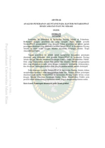Fitriani, Fitriani (2018) Analisis Penerapan Akuntansi Pada Kantor Notaris/Ppat Di Kecamatan Payung Sekaki. Other thesis, Universitas Islam Riau.