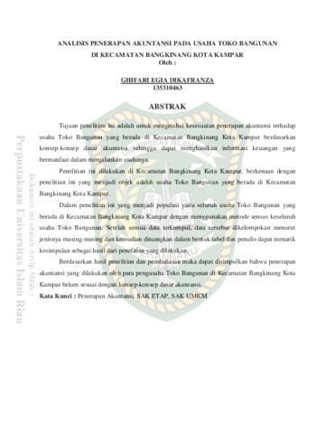 Dikafranza, Ghifari Egia (2018) Analisis Penerapan Akuntansi Pada Usaha Toko Bangunan Di Kecamatan Bangkinang Kota Kampar. Other thesis, Universitas Islam Riau.