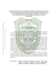 Hanaria, Yoga (2018) Pengaruh Kemajuan Teknologi Informasi, Persaingan Pasar Yang Tajam, Penetapan Organisasi Dan Sistem Pengendalian Manajemen Terhadap Kebutuhan Informasi Akuntansi Manajemen Pada Bank Perkreditan Rakyat Di Kota Pekanbaru. Other thesis, Universitas Islam Riau.
