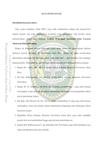 Setriaswati, Vivia (2018) Analisi Penerapan Akuntansi Pada Yayasan Madrasah Aliyah Hidayatul Islam Tanjung Balai Karimun (KEPRI). Other thesis, Universitas Islam Riau.